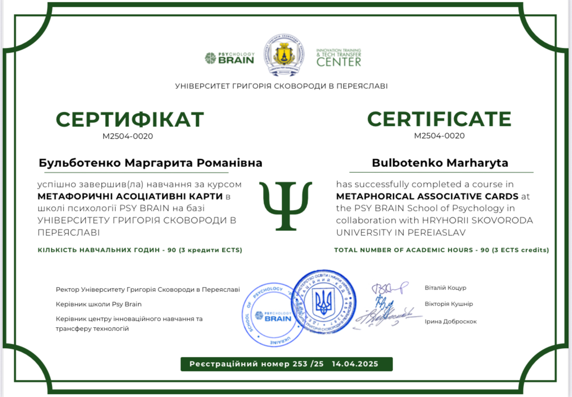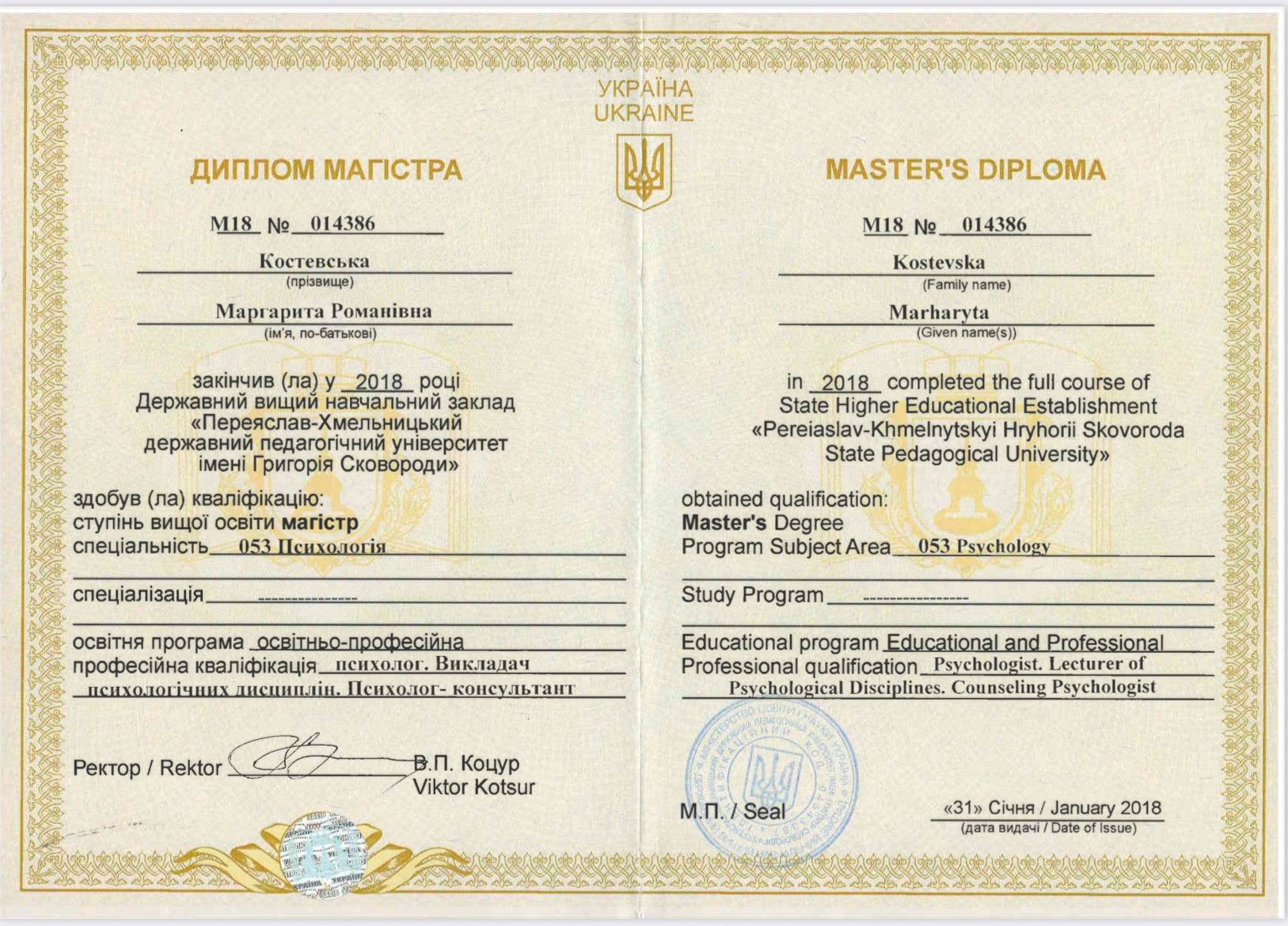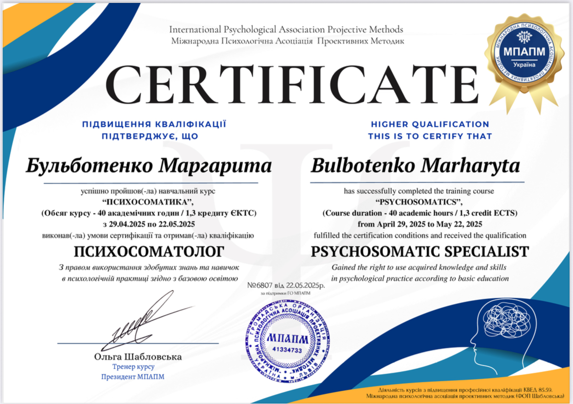 Я Маргарита — магістр психології, психосоматолог, арт-терапевт та сексолог.