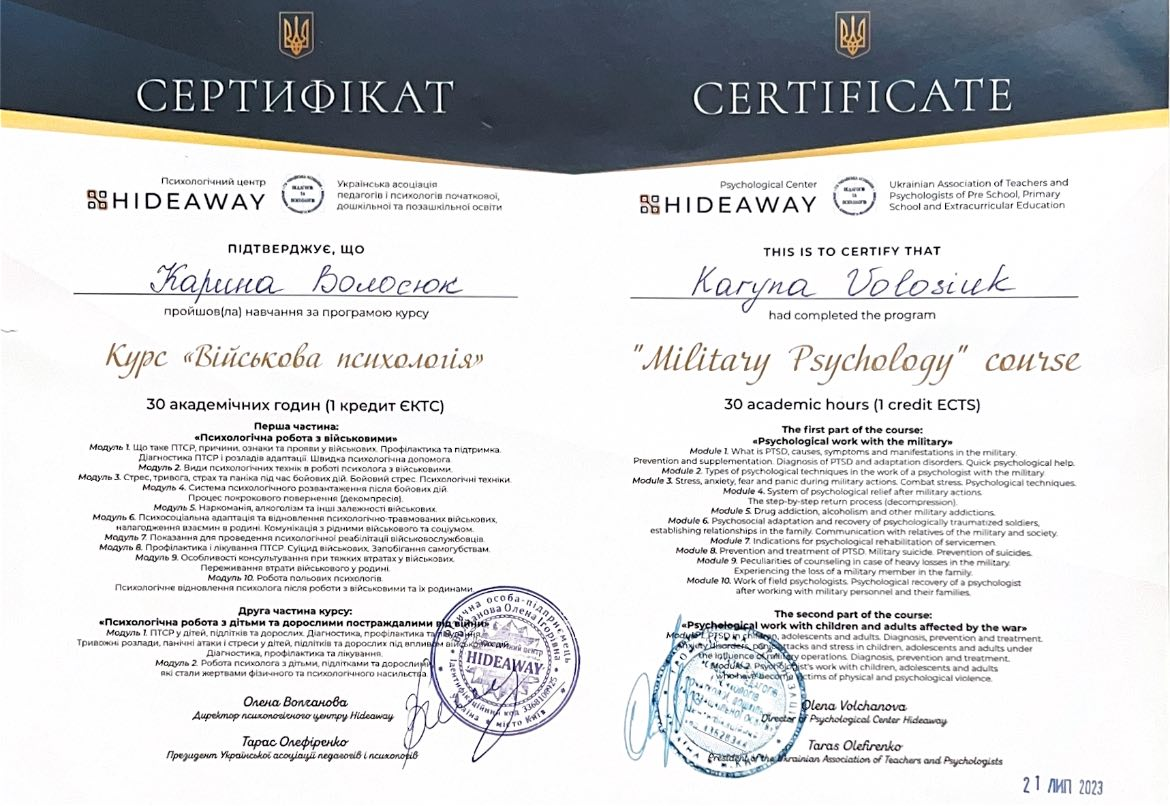 Безкоштовно підберемо іншого психолога, якщо цей не підійде.
