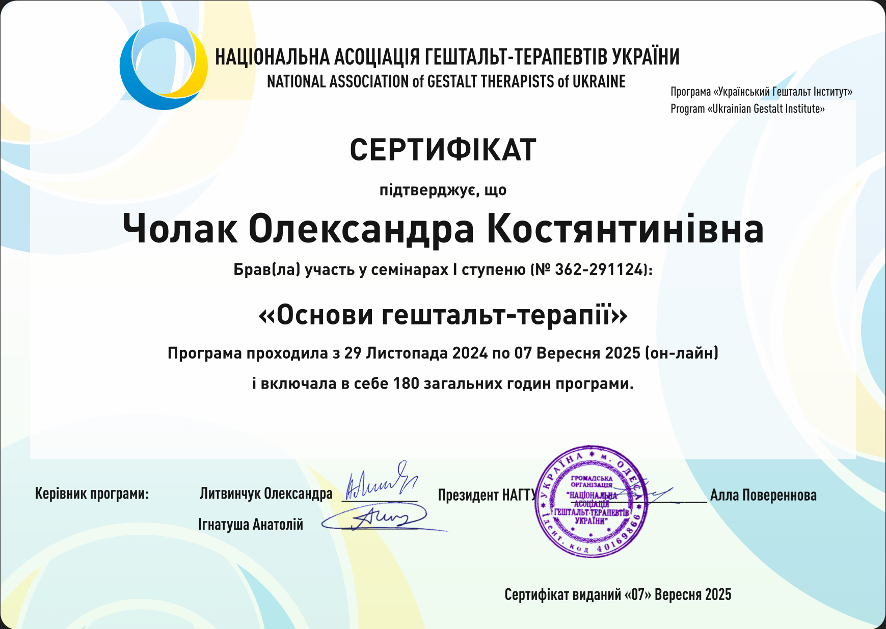 Меня зовут Саша, мне 34 года, я психолог-консультант и гештальт-практик. Успешно веду частную практику с 2020 года. Несмотря на основной выбор гештальт-подхода, я гибко использую элементы других психологических направлений, адаптируя их к потребностям каждого клиента.