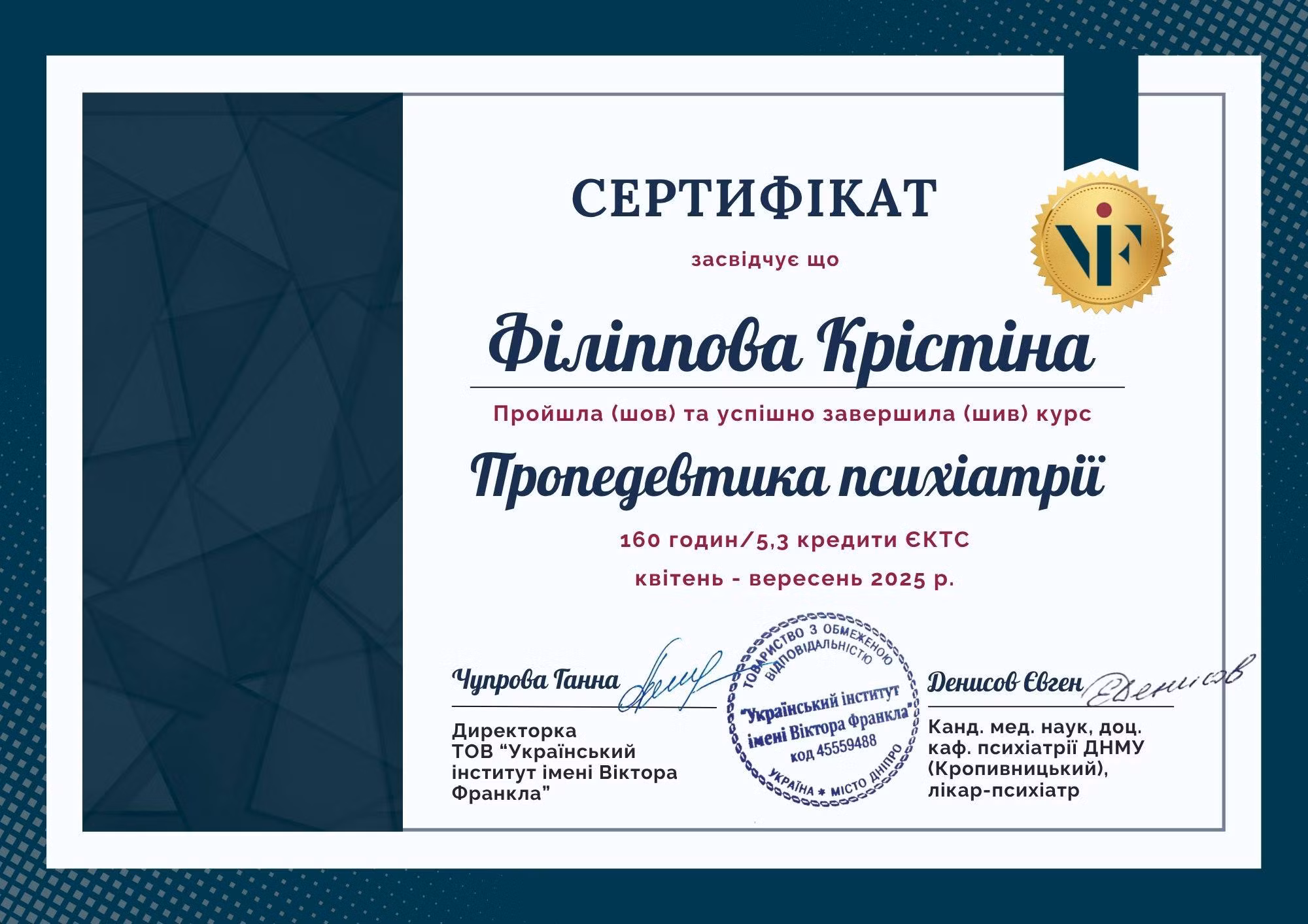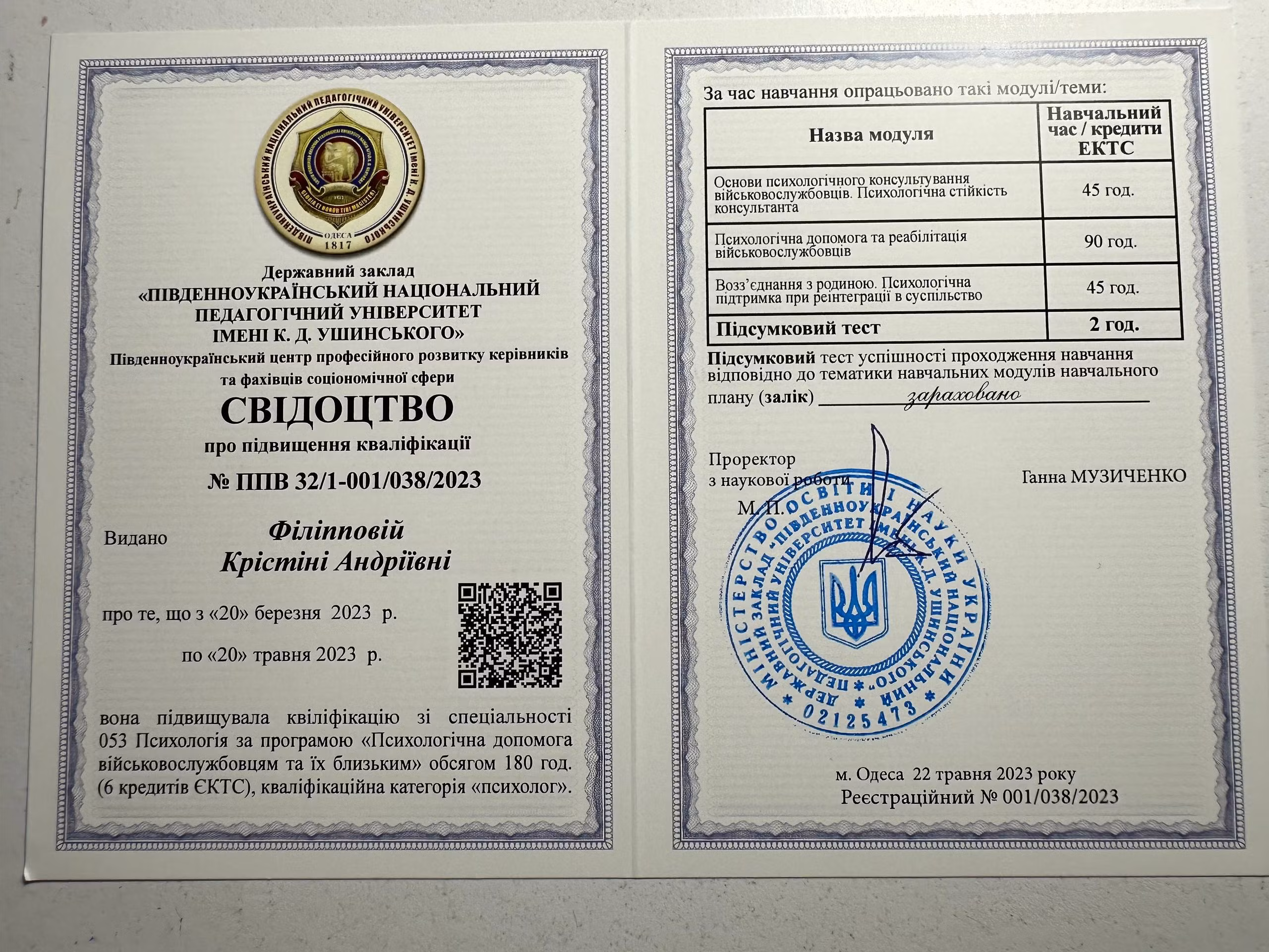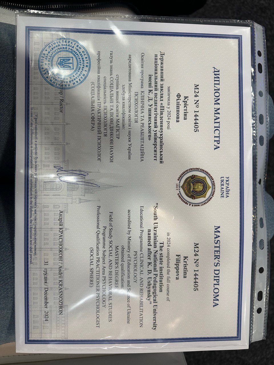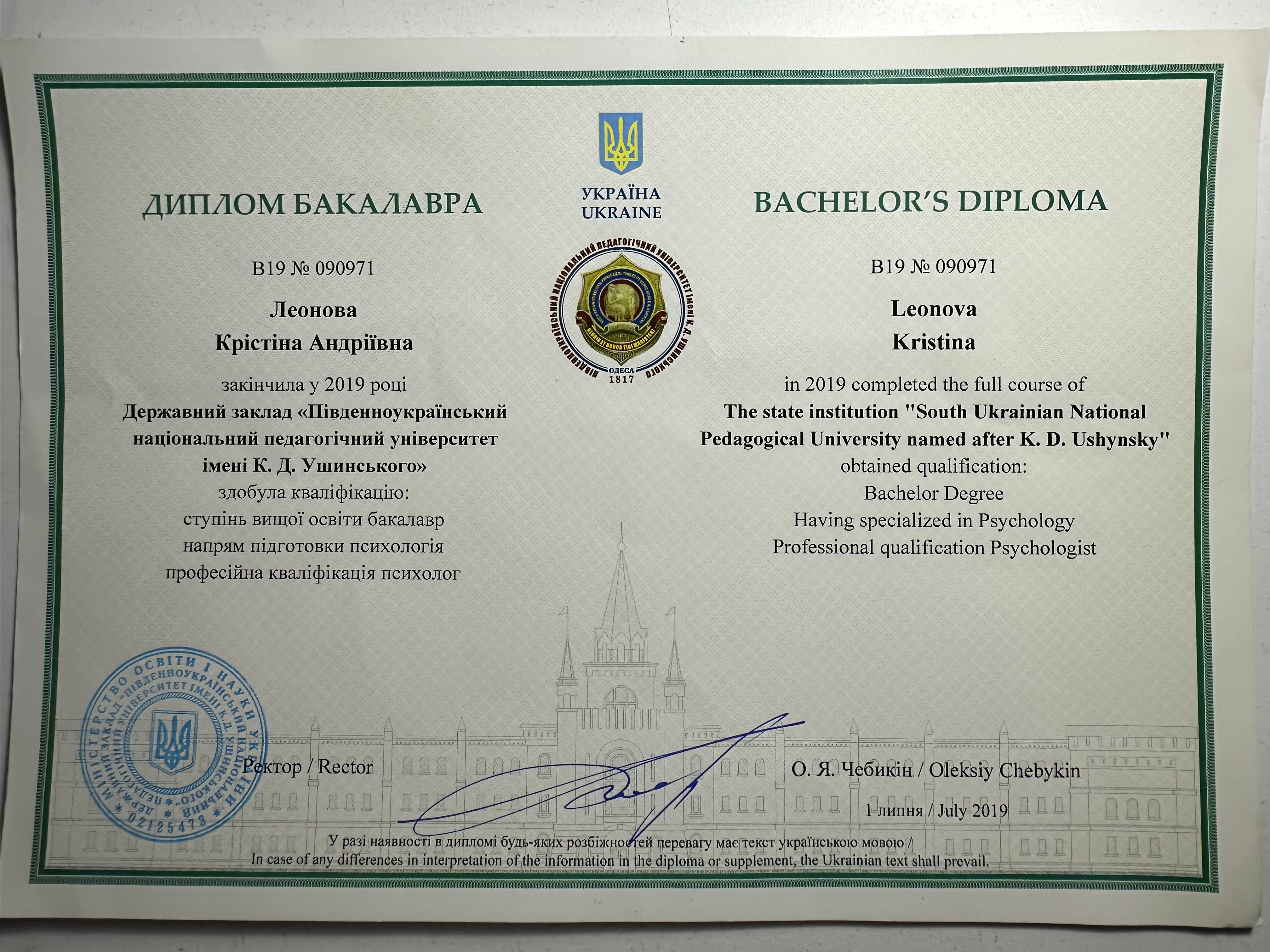 🎓 У 2019 році я здобула диплом бакалавра психології в інституті Ушинського.
