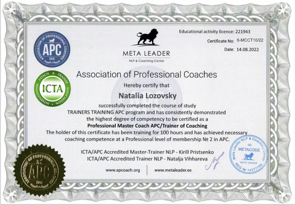 Меня зовут Наталья Лозовская. Я клинический психолог, коуч, специалист по психосоматике.
