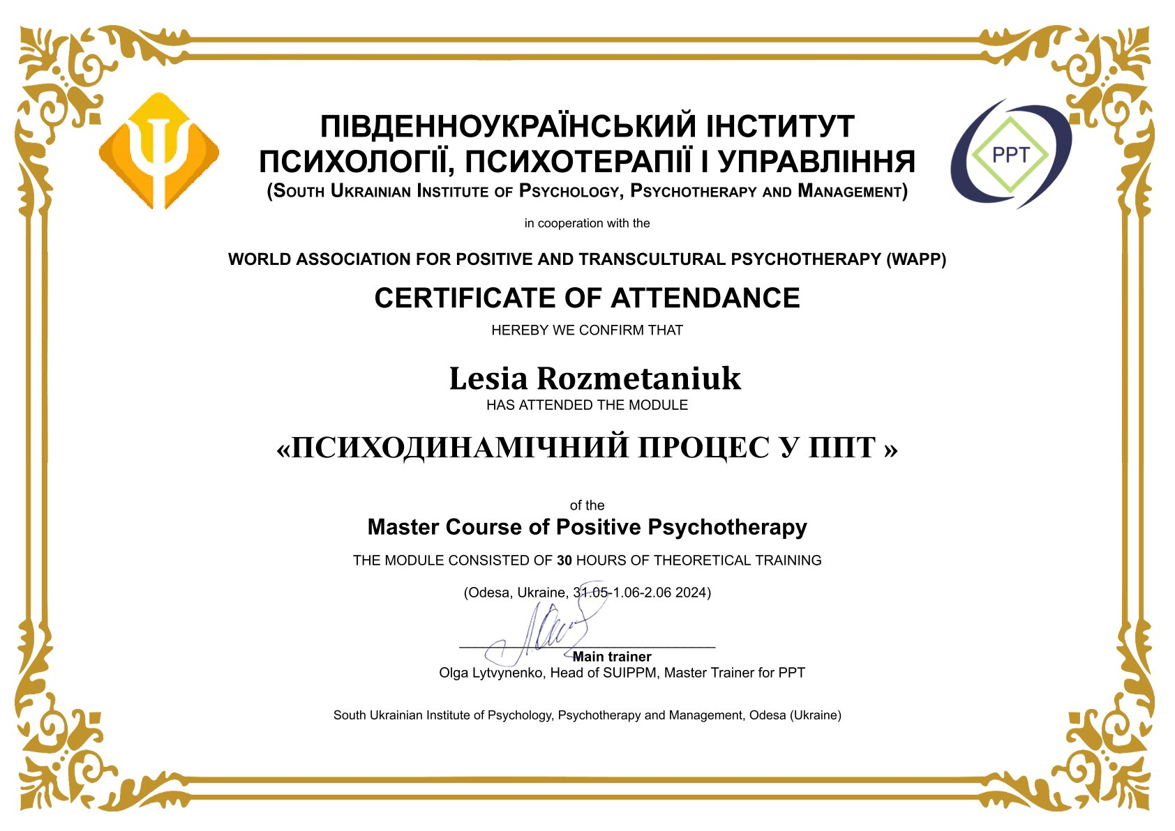 Вітаю! Мене звати Леся! Я працюю у методі позитивної психотерапії. Це підхід, який допомагає не лише подолати труднощі, а й відшукати потенціалі клієнта: